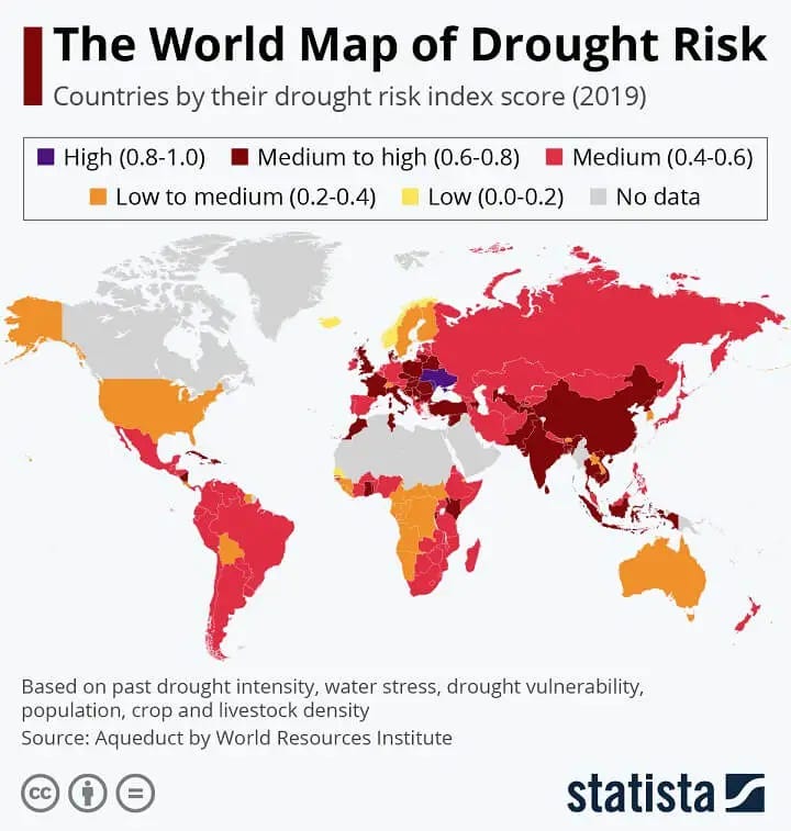 Meanwhile, the Middle East is already experiencing severe droughts, which is a problem when 70% of the region’s agriculture depends on rain. Lakes and rivers across the region are drying up, leaving less water for people and for crops. It’s also disrupting the flow of electricity for people who rely on hydroelectric dams. This is why water scarcity is expected to lead to more conflict.