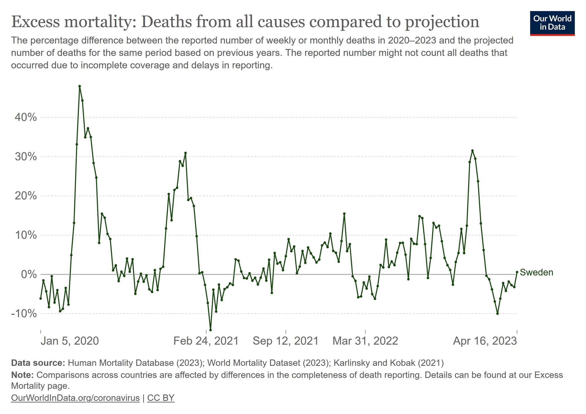 A major study in Nature dispelled all of these myths back in 2022. From every scientific standpoint, Sweden was a total failure. As the L.A. Times puts it, they "deliberately tried to use children to spread Covid-19 and denied care to seniors and those suffering from other conditions."