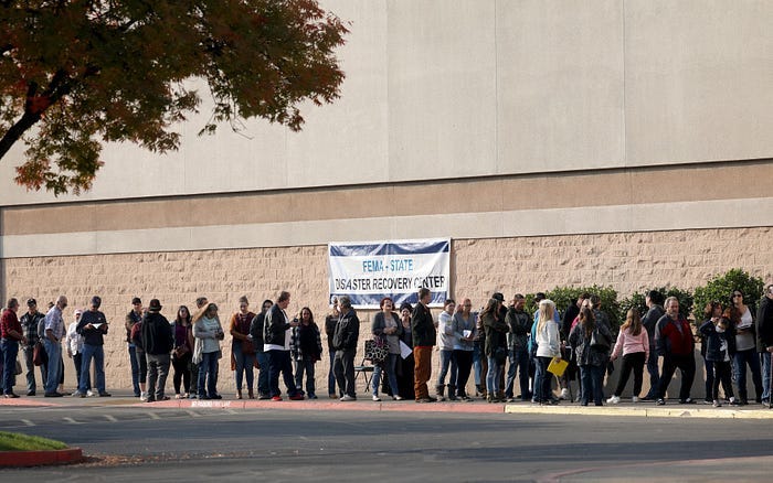 But seriously, some people didn’t even remember who their insurer was, and had no way to find out. At the Disaster Recovery Center set up in Chico after the fire, the line of people to replace their IDs and Social Security cards stretched out the door.