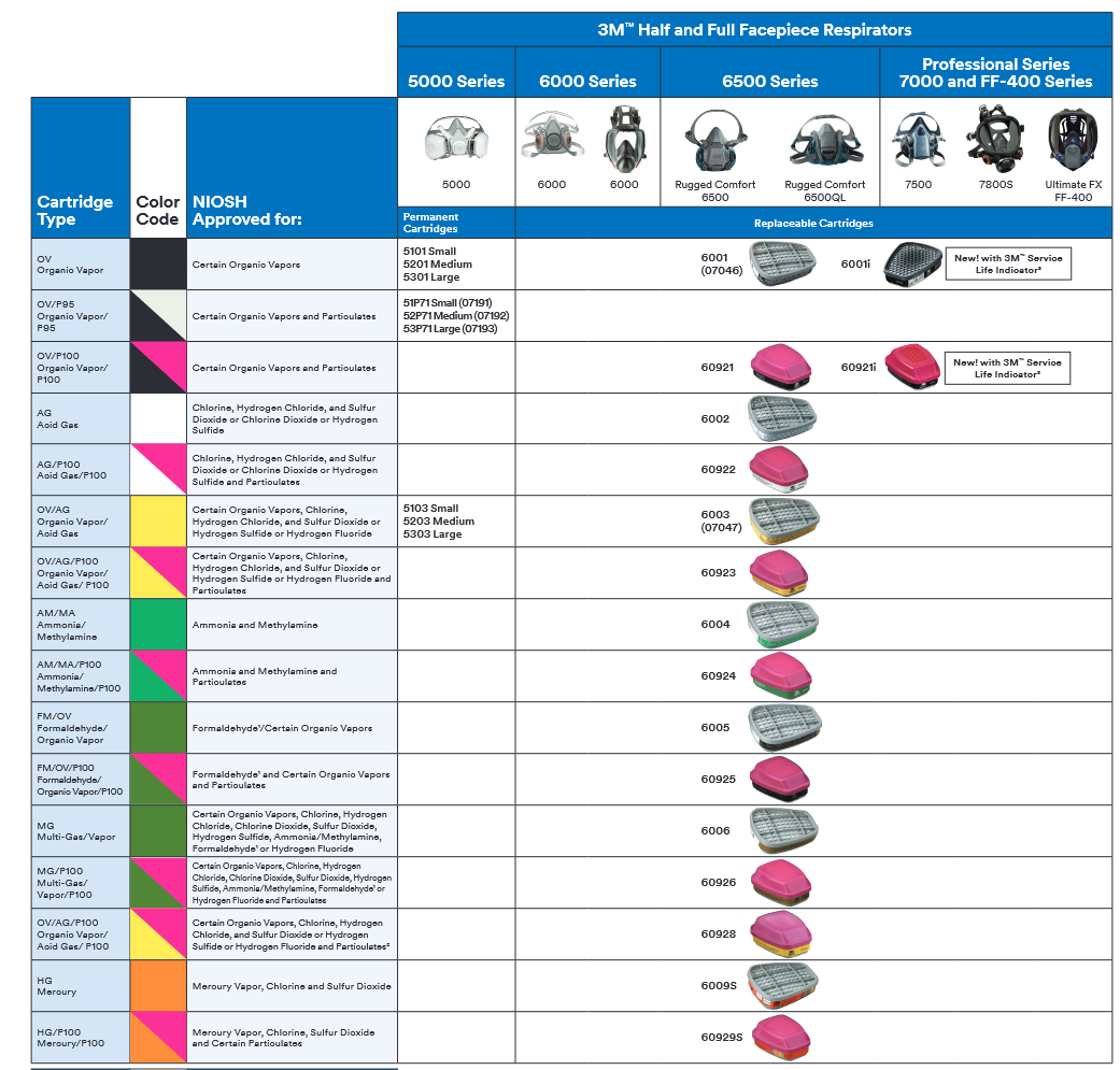 A CDC study found that the most common gases you’ll face during an industrial accident include carbon monoxide, ammonia, chlorine, hydrochloric acid, and sulfuric acid. We recently bought 3M’s 6502QL half-face respirator with a set of P100 60926 multi-gas cartridges. Others have recommended the 3M secure click system. Here’s their guide. According to this guide by 3M, gas and vapor cartridges generally last for six months after they’re opened. One set of cartridges should get you through most emergencies. It doesn’t hurt to have a backup.