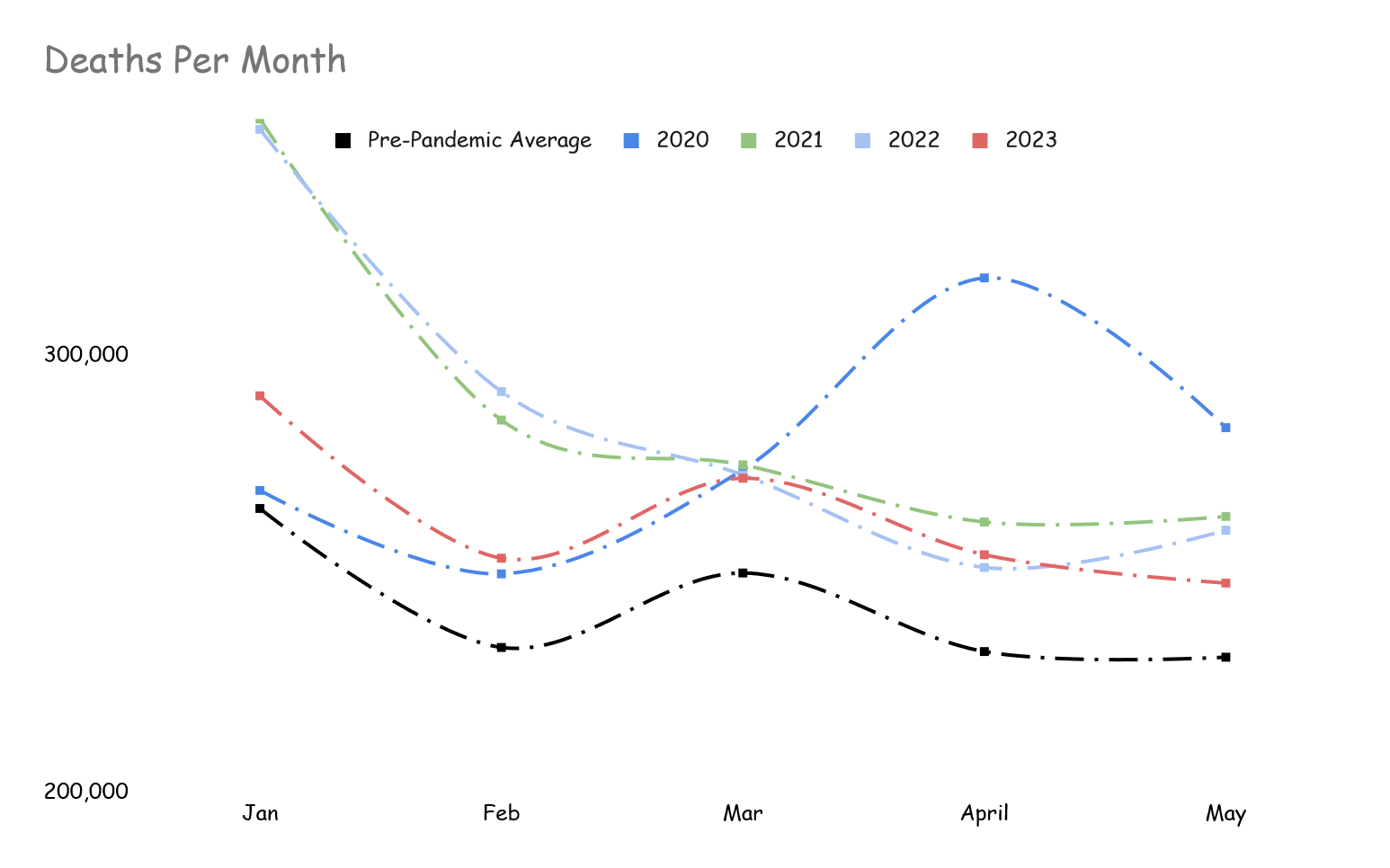 On March 15, 2023, the methodology for estimating excess deaths was updated to account for the fact that approximately 160 weeks of data during the pandemic were being excluded in the algorithm (so that expected values were not inflated due to substantially elevated mortality during the pandemic), resulting in unstable estimates of expected weekly numbers of deaths in some cases. To account for this limitation and provide more stable estimated expected numbers for recent time periods, the Farrington surveillance algorithms (1) were first applied to data through 2020 and used to predict the expected weekly number of deaths through 2020. To estimate the expected number of deaths for 2021, weekly counts of death above the 95% prediction interval in 2020 were replaced with imputed values, assuming that deaths (on average) in 2020 reflected the expected numbers and variability predicted by the Farrington algorithm.