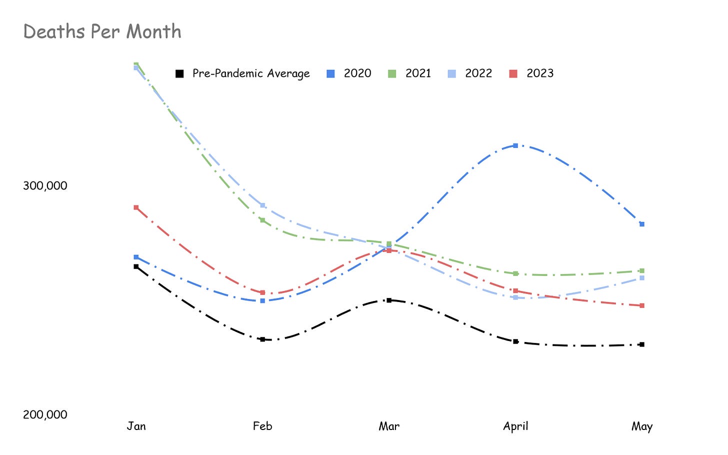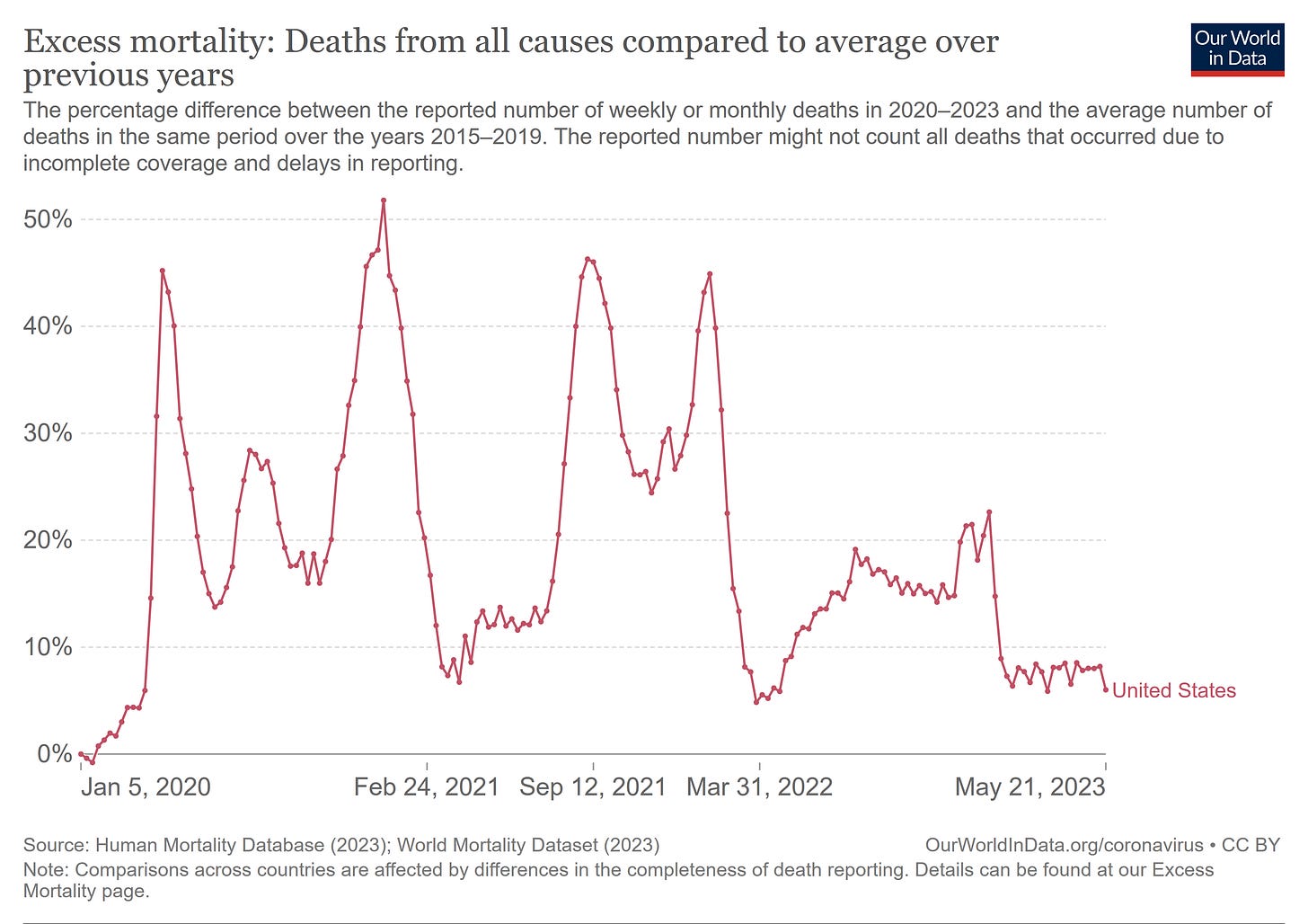 They actually aren’t. In fact, we should expect what health statisticians call a “mortality displacement.” The mortality rate should drop below average after a mass casualty event like a pandemic, because they tend to wipe out extremely vulnerable populations first. We’re not seeing that.