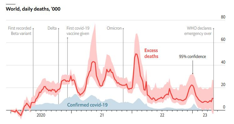Now that the pandemic is “officially over,” they’ve gone back and included pandemic deaths in their new excess mortality predictions.